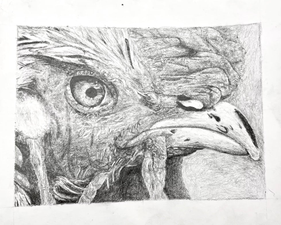 Choosing very small and simple reference images with flat planes (no transitions) of value allows students to focus on developing good form and practicing technique while also developing the habit of looking closely at the reference image to make sure they are working in the correct values. Working with flat planes of value makes it easier to tell if the values are accurate and it is easier for them to see if their shading is even or sketchy.