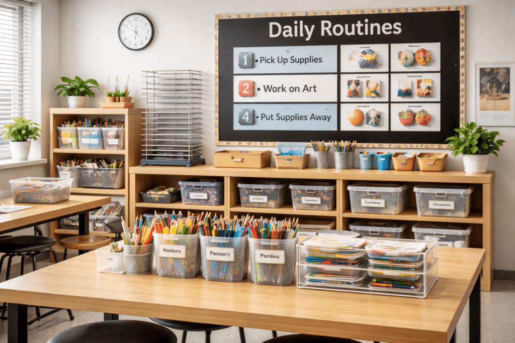 This guide walks through the art classroom systems that reduce friction, strengthen expectations, and support high school art classroom management without burnout.