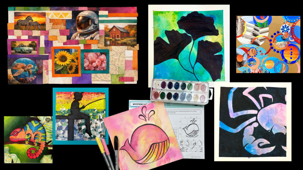 Each section below links to deeper lesson ideas, step-by-step projects, and ready-to-use resources so you can quickly find the right project for your students, schedule, and materials. These middle school art projects focus on building foundational skills, confidence, and creativity through engaging, age-appropriate lessons designed for grades 6–8.