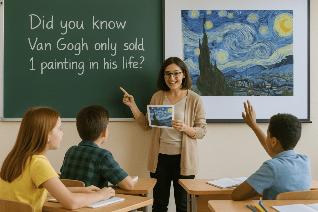 Art becomes human when you tell the stories behind it. Students connect with the artist as a person, not just a name on a timeline.