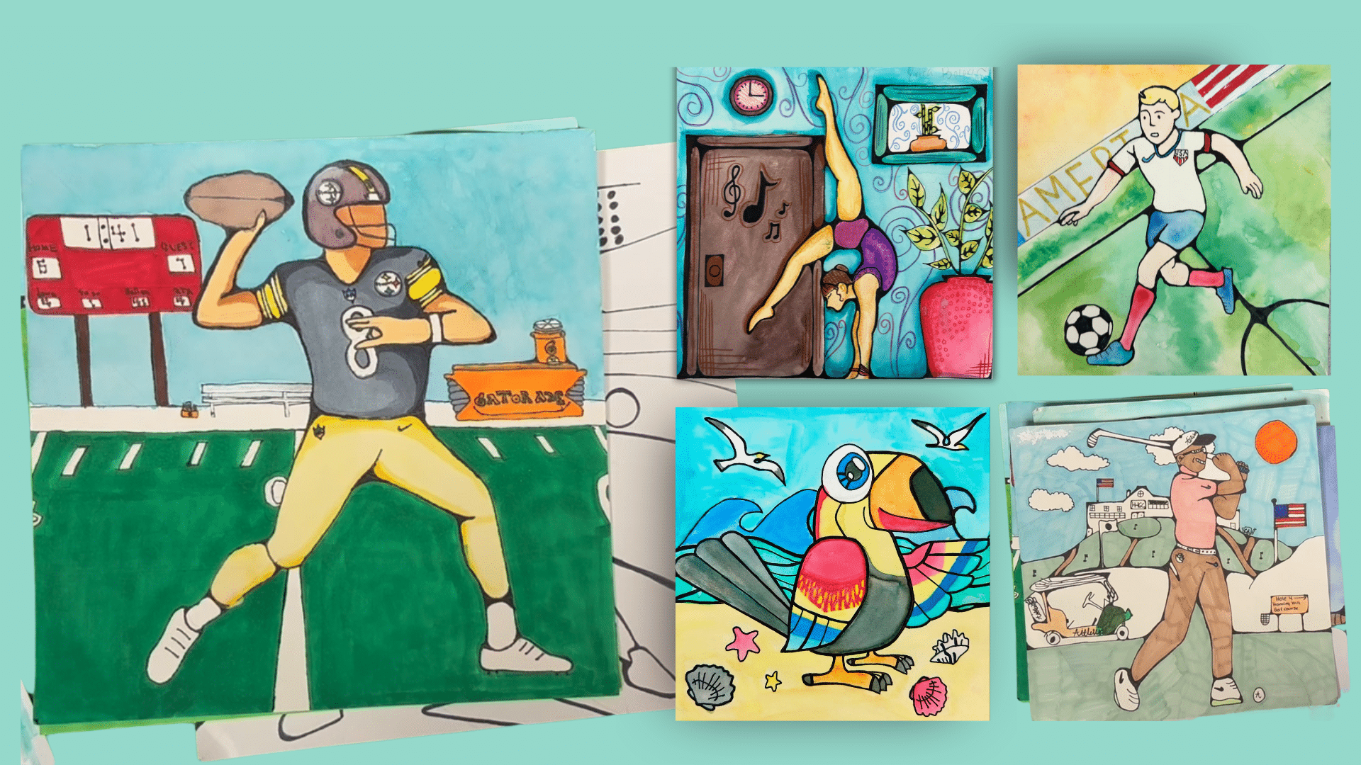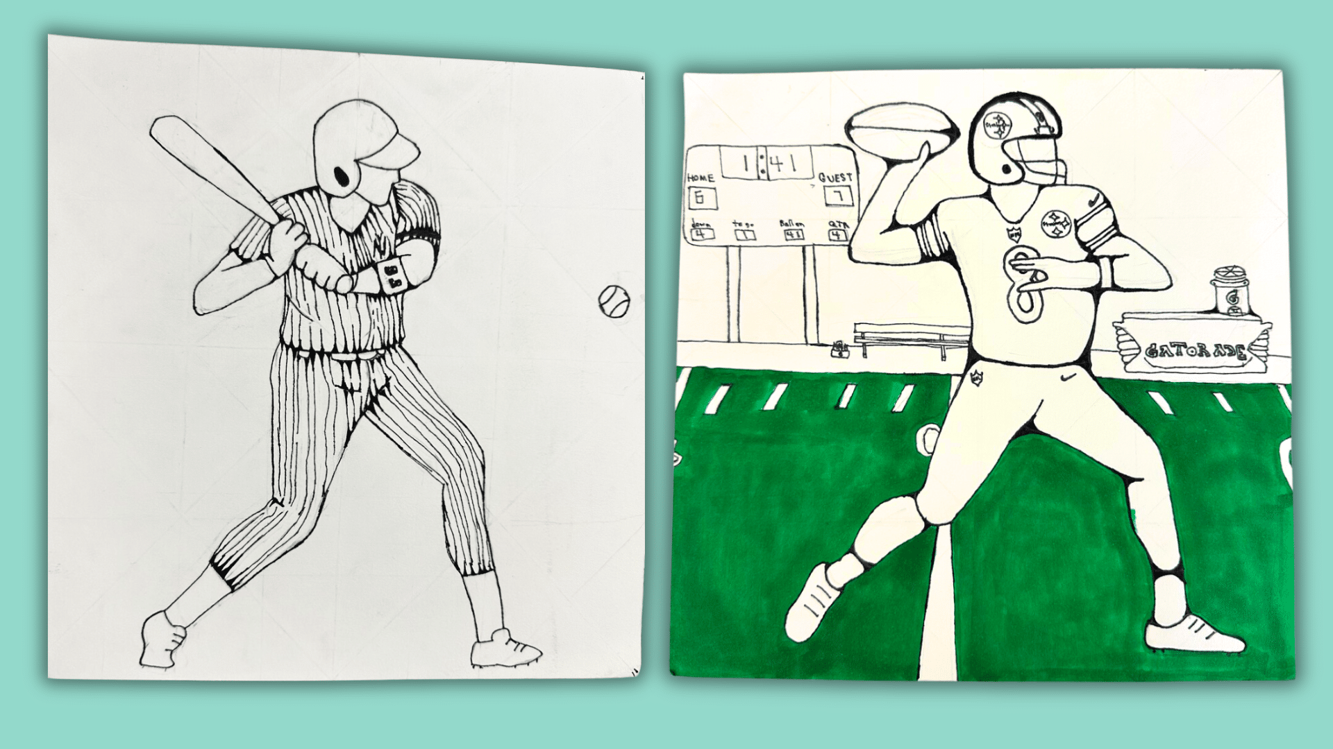 This no-prep art lesson appeals to even the most apathetic students. The sports- and animal-themed reference images enable all students to create a work of art that reflects their unique interests and personalities. It reinforces the Elements and Principles of Art, including line, balance, unity, and basic color theory. It works well as a drawing-skills unit, a substitute lesson, a social-emotional learning (SEL) art lesson, or a multi-day project.
