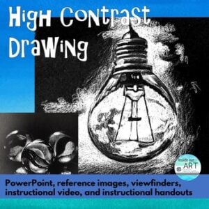 This high school art lesson is a great way to introduce reverse value drawing. This lesson is great for in the classroom or as a distance learning assignment. It is a follow-up to any shading lesson and contains all the materials you need to just get started. Students love shading with this technique and the results are always amazing.