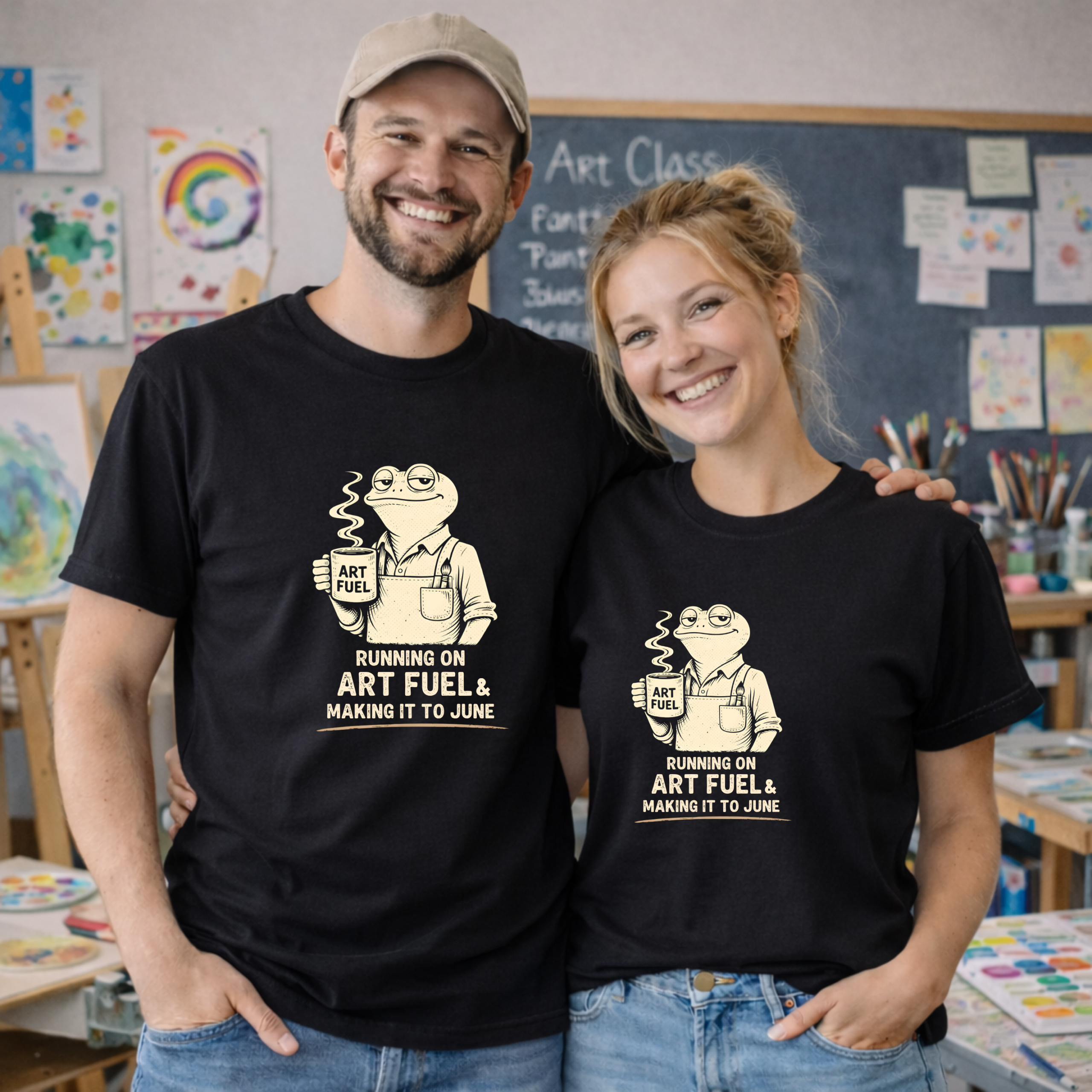 This art teacher shirt captures the energy it takes to make it to the end of the school year. In the art room, creativity fuels every lesson, even when energy is running low.