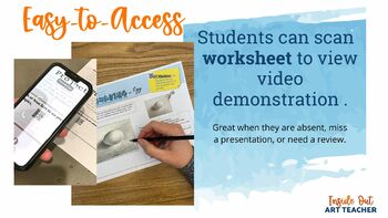 Both PDF and Google Slide versions of the drawing and shading worksheet art activities are included to fit your classroom needs. They contain links and QR codes that students can scan with any device to access the video demonstration easily.
