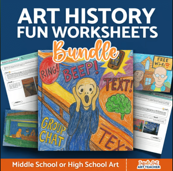 Make teaching art history simple and fun with this bundle of 10 printable art history worksheets. Each activity turns a famous artwork into a creative, no-prep art lesson that students love. These art history activities are perfect for middle school and high school art classes, sub plans, early finisher work, one-day lessons, or artist study projects.