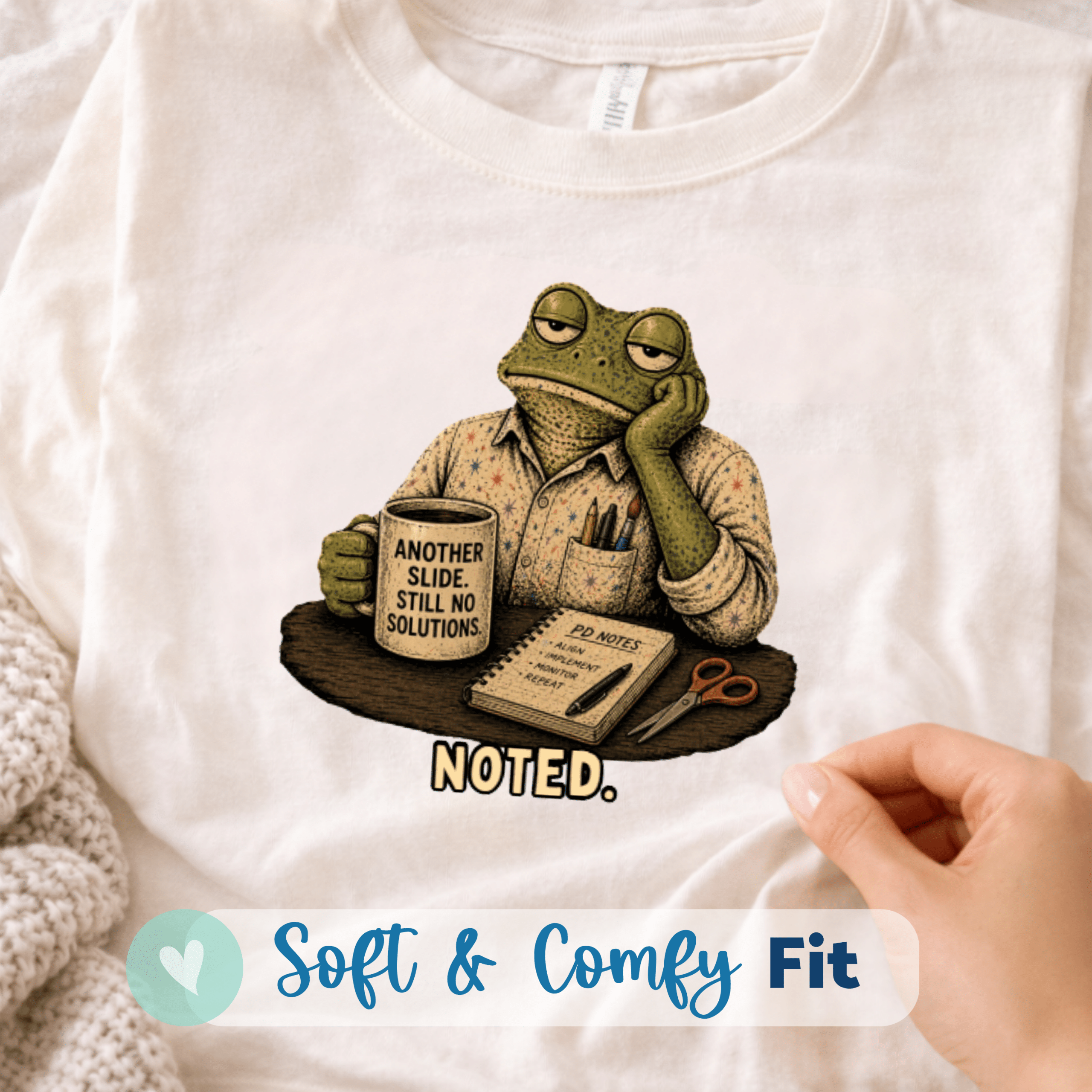 Whether you’re sitting through meetings or wrapping up the year, this design reflects what teaching is really about.