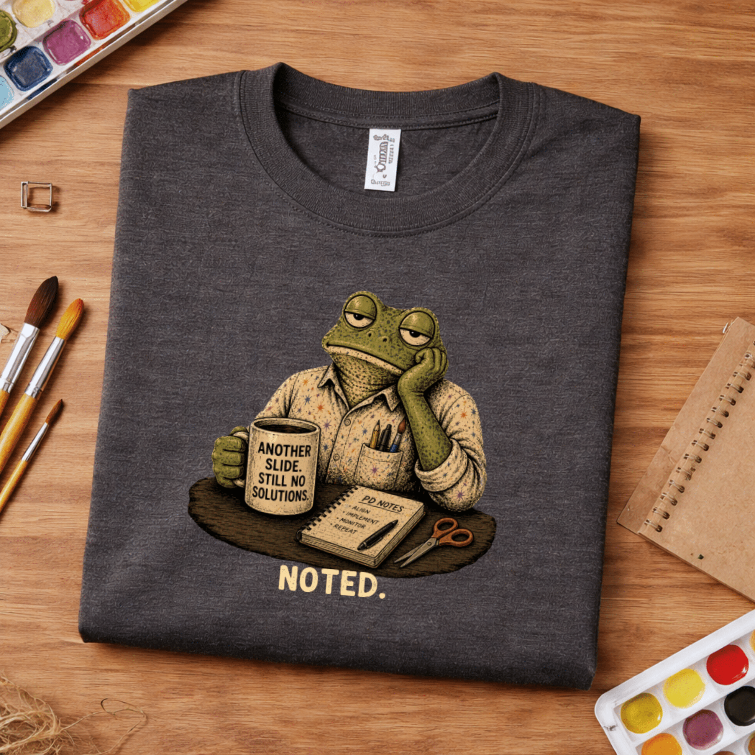 This art teacher shirt captures the reality of professional development and meetings. In the art room, especially at the end of the school year, notes are taken—but not always helpful.