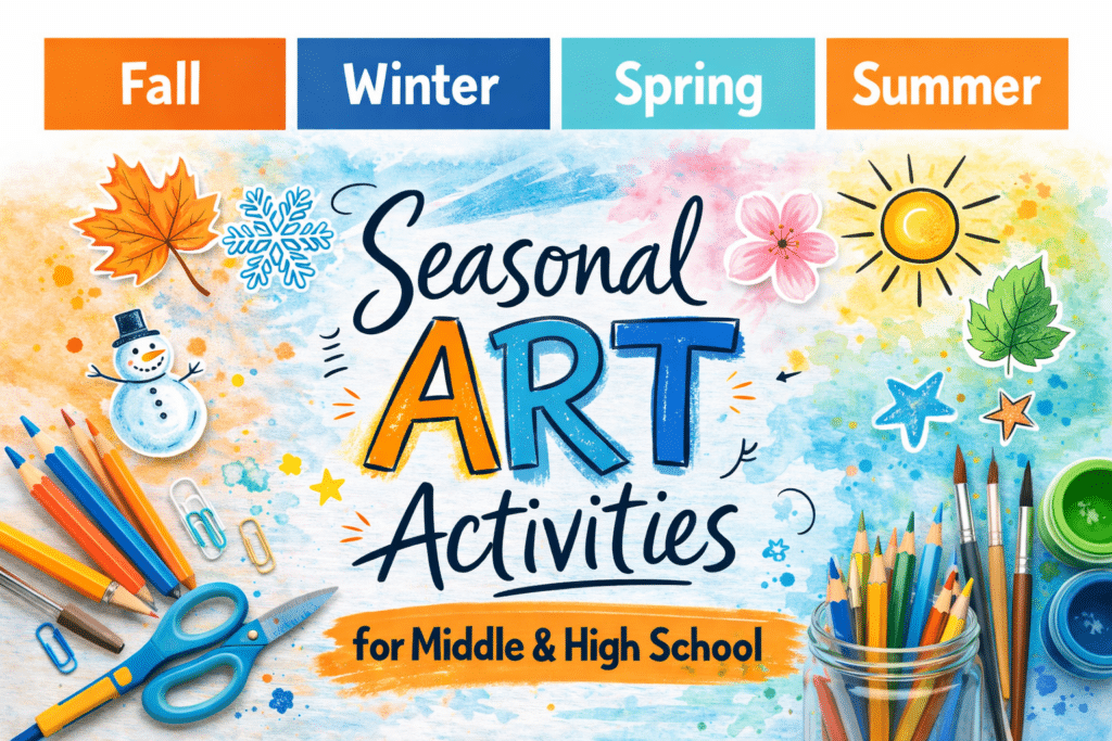 Seasonal art activities for middle school and high school make it easy to keep students motivated while connecting classroom projects to holidays, seasonal themes, and real-world inspiration. Whether you’re planning fall art lessons, winter drawing projects, spring art activities, or flexible end-of-year art projects, seasonal ideas help keep your art classroom fresh and engaging all year long.